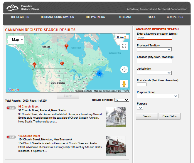 Répertoire canadien des lieux patrimoniaux, mieux connu sous le nom de site Web historicplaces.ca, va fermer. Parcs Canada a annoncé fin 2025 que la base de données consultable, pierre angulaire de la compréhension des lieux patrimoniaux au Canada, serait définitivement déconnectée au printemps 2026. Les défenseurs du patrimoine s’efforcent de sauver les données et de trouver un remplacement.