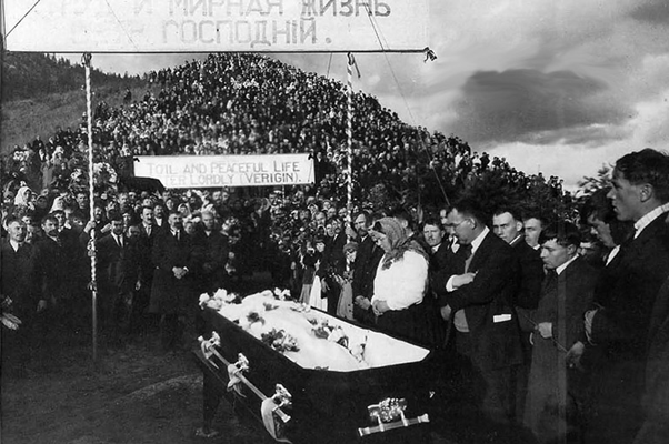 The funeral of Peter Verigin attracted about 7,000 mourners. Courtesy of Simon Fraser University Library.