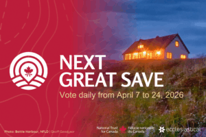The National Trust for Canada’s Next Great Save Competition is back for its 4th year running, generously supported by Ecclesiastical Insurance. We announce our competitors on March 31, 2026! Stay tuned to learn more about the historic sites you can vote for daily from April 7 to 24, 2026.